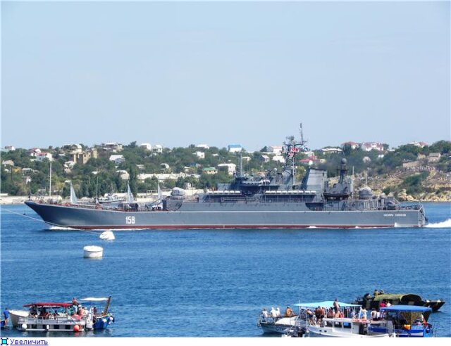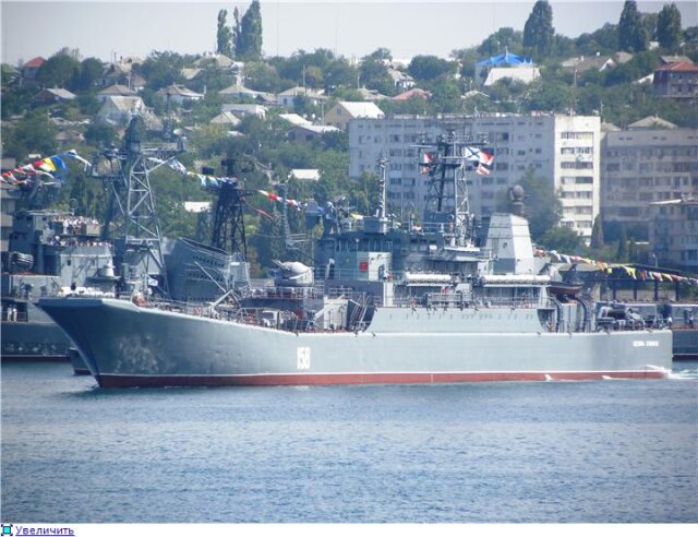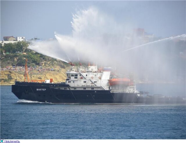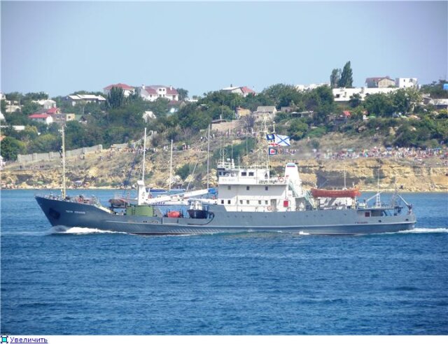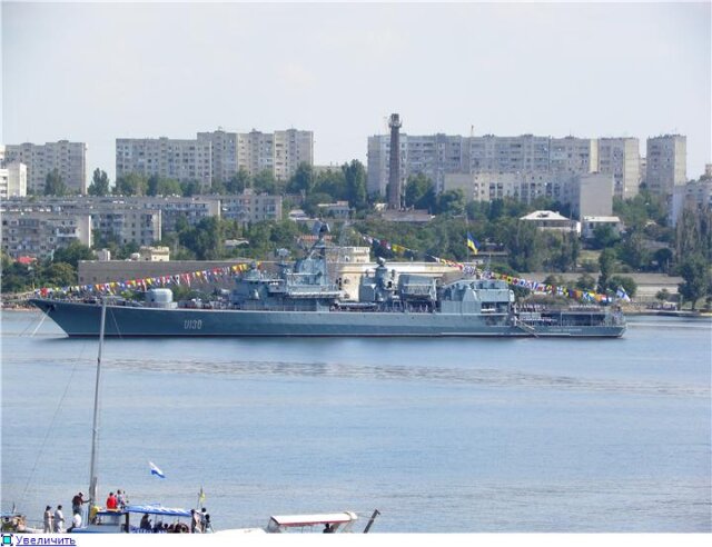 На рейде на этот раз выстроились следующие корабли - в первом строю СКР "Пытливый", фрегат ВМС Украины "Гетьман Сагайдачный", СКР "Сметливый", БПК "Керчь". Недалеко от входа в бухту расположился транспорт вооружений "Генерал Рябиков", а во втором строю уже были МРК "Штиль", тральщик, МПК "Владимирец" и судно поддержки.