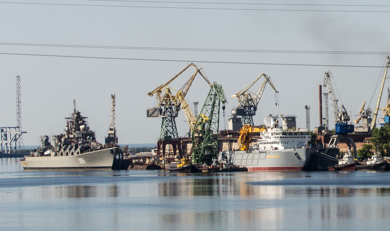 На предприятии "Звездочка" в городе Северодвинск Архангельской области в субботу выведен из эллинга морской транспорт вооружения нового поколения "Академик Ковалев" проекта 20181