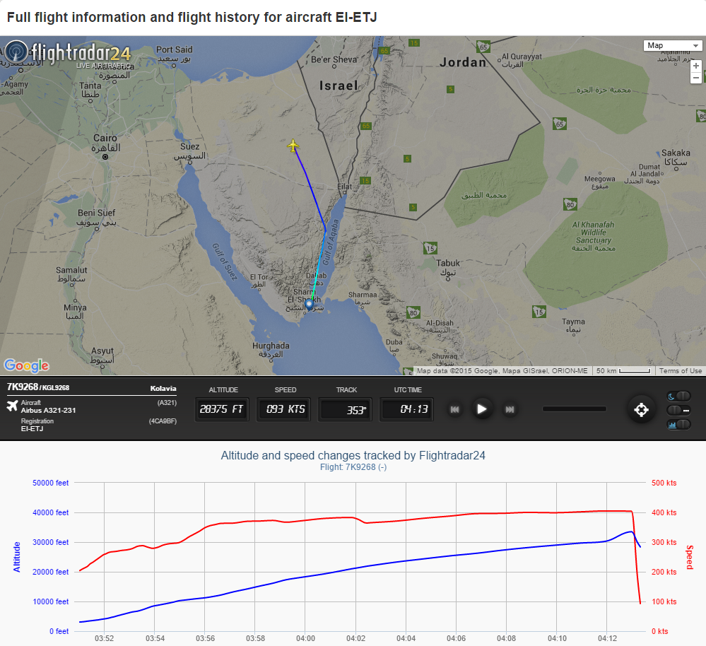 Перед исчезновением самолет из Шарм-эль-Шейха перешел в пике